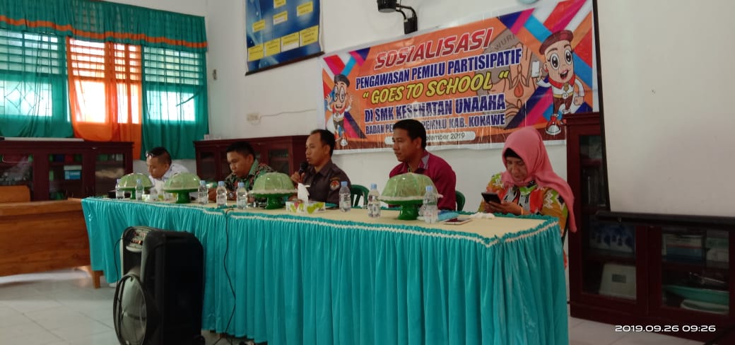 UNAAHA, Badan Pengawas Pemilihan Umum (Bawaslu) Kabupaten Konawe, Sulawesi Tenggara (Sultra) melaksanakan sosialisasi tentang kepemiluan kepada pemilih pemula. Pada kesempatan itu sasaran sosialisasi kepada para pelajar di SMK Kesehatan Unaaha.