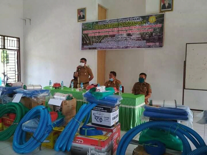 “Inilah sebetulnya wujud dari visi-misi kami bersama bapak bupati (Kery Saiful Konggoasa). Bahwa konsep pembangunan kami memulai dari pemenuhan kebutuhan pangan atau mandiri pangan. Kenapa? Supaya dalam situasi dan kondisi apapun masyarakat masih bisa bertahan hidup secara mandiri , termasuk di masa pandemi ini. Situasi yang tidak pernah diduga akan terjadi” papar Wakil Bupati Konawe Gusli Topan Sabara saat menyerahkan bantuan mesin pengolahan sagu di Kantor BP4K, Senin (20/4).