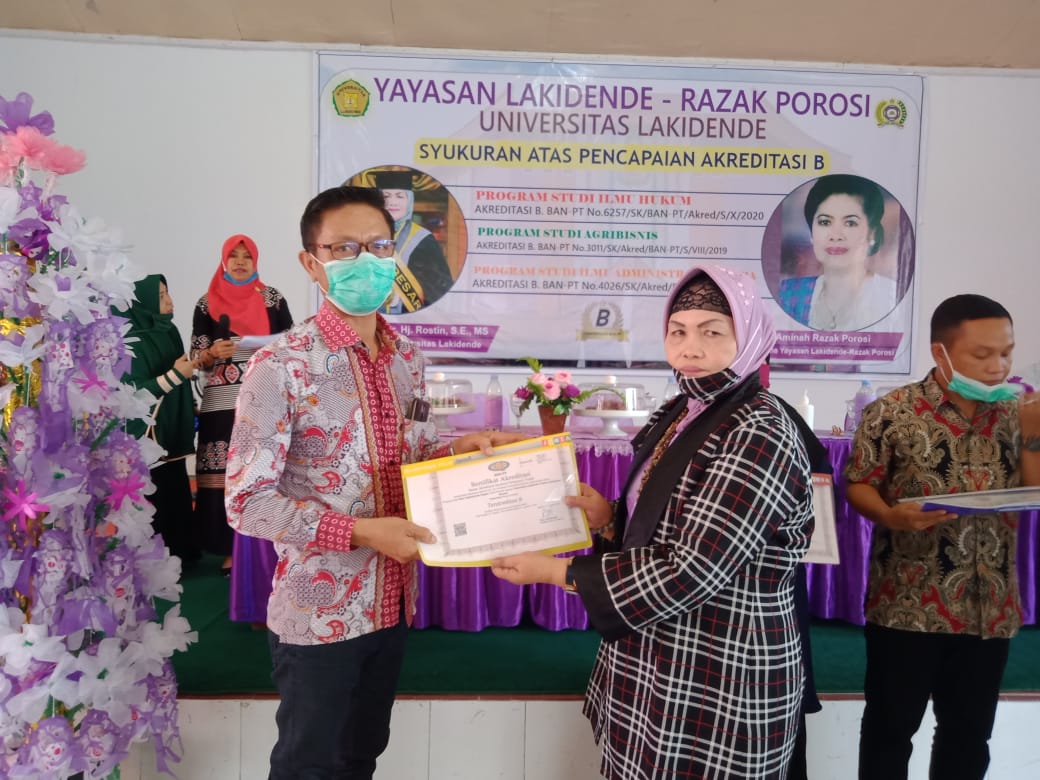 UNAAHA, SULTRA HEADLINE.COM. Sebanyak tiga program studi dari fakultas yang berbeda di Universitas Lakidende Yayan Lakidende Rasak Porosi Kabupaten Konawe, Sulawesi Tenggara (Sultra) naik status akreditasi B , masing-masing Program studi ilmu hukum, Program studi agribisnis dan program studi adminstrasi negara.