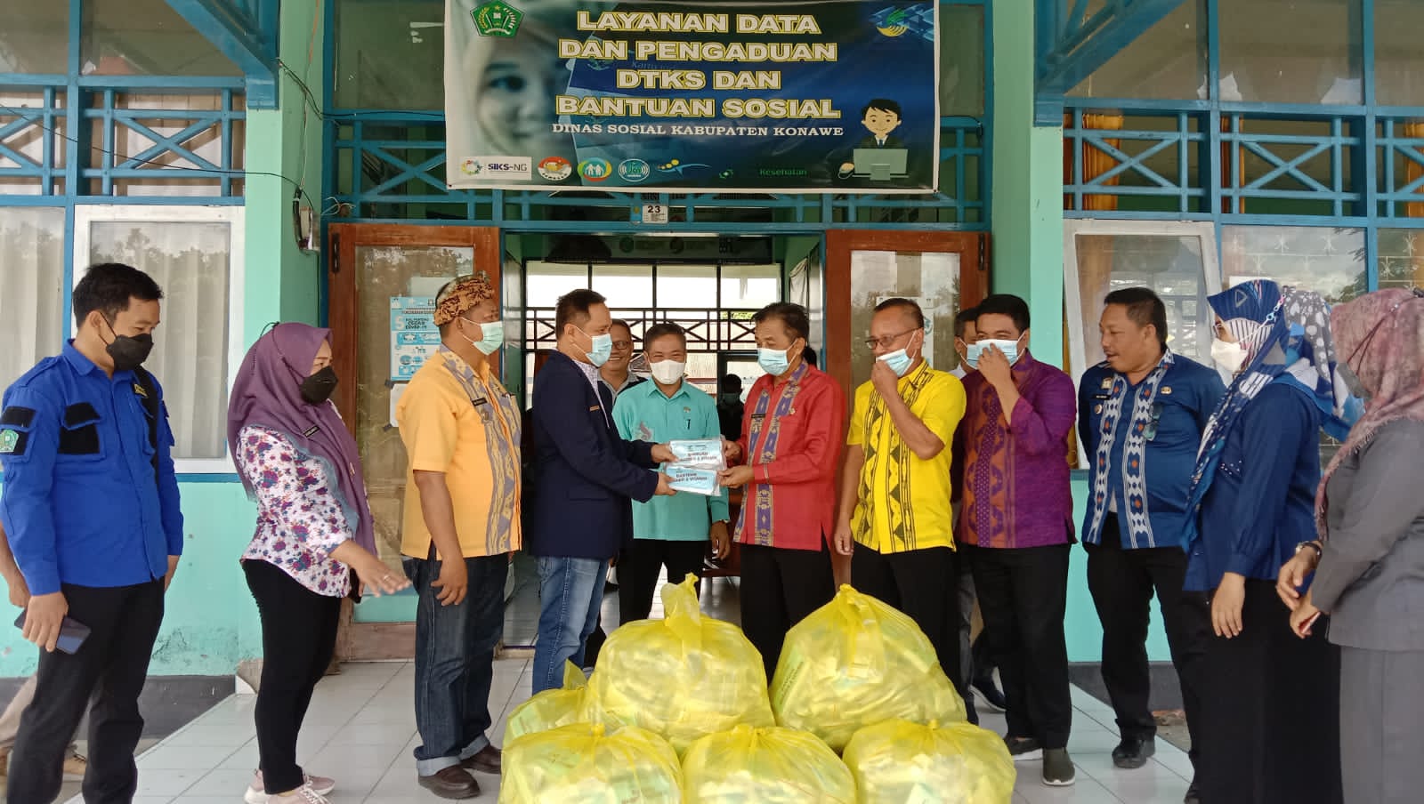 Untuk Kabupaten Konawe, penyaluran paket bantuan masker dan vitamin itu dilaksanakan di Kantor Dinas Sosial (Dinsos) setempat, Kamis , (18/11). Hadir Kepala Dinas (Kadis) Sosial, Agusuyono , Ketua Karang Taruna Abdul Hasyim dan sejumlah camat dan masing-masing karang taruna .