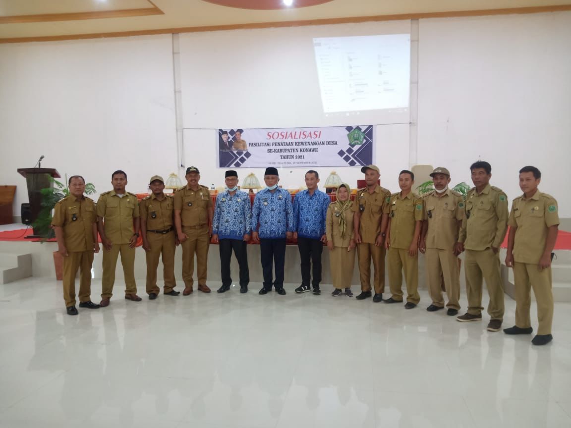 UNAAHA, SULTRA HEADLINE.COM. Badan Pemberdayaan Masyarakat Desa (BPMD) Konawe menggelar sosialisasi pendataan kewenangan desa di salah satu hotel di Unaaha, Senin (29/11/2021). Pesertanya seluruh kepala desa (kades) se-Konawe. Turut hadir Bupati Konawe, Kery Saiful Konggoasa.