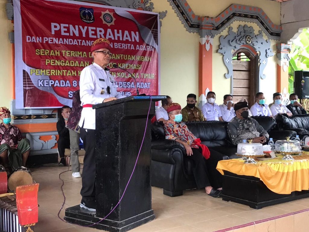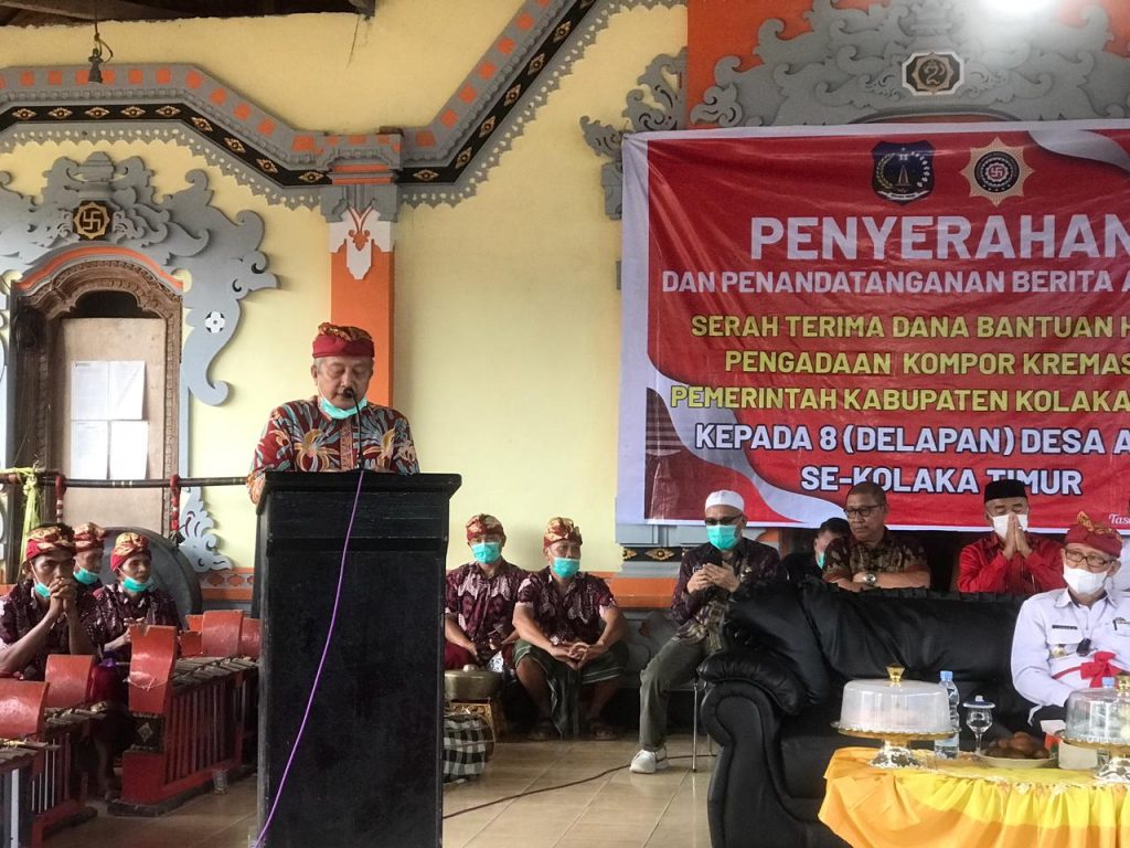 Tirawuta,SULTRA HEADLINE.COM. Wakil Gubernur Sulawesi Tenggara (Sultra) Dr. H. Lukman Abunawas, SH., M.Si mengadiri acara penyerahan dan penandatanganan berita acara penyerahan bantuan hiba pengadaan kompor kremasi kepada 8 desa adat di Kabupaten Kolaka Timur (Koltim) . Dilaksanakan di Desa Tasahea Kecamatan Loea , Rabu (19/01/2022).