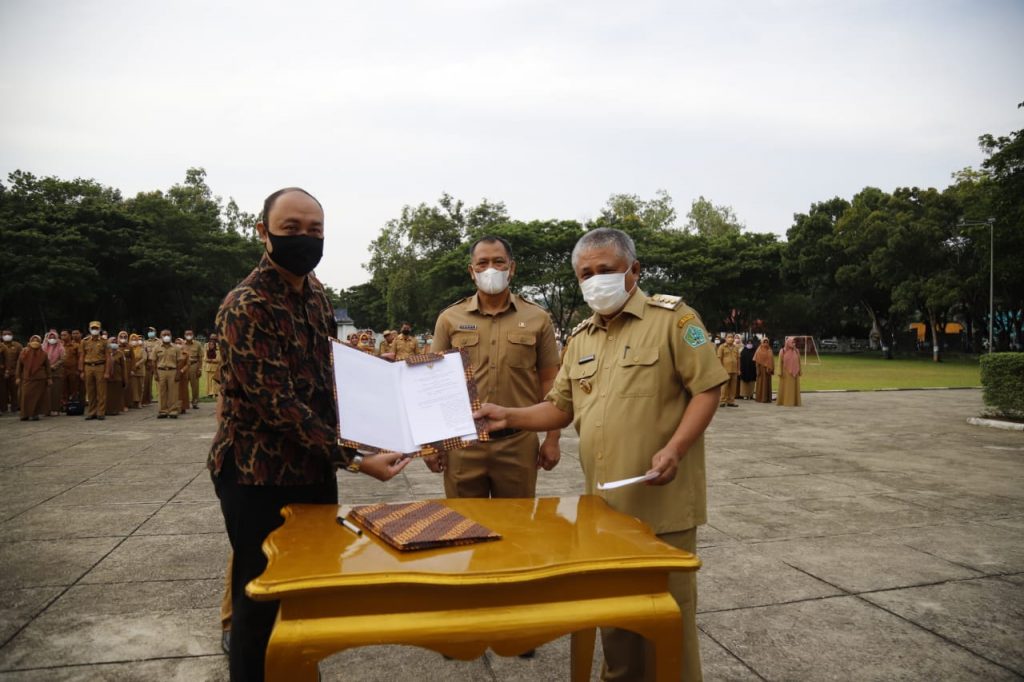Jalinan kerjasama sama ini tertuang dalam penandatanganan Memorandum of Understanding (MoU) atau nota kesepahaman yang dilakukan oleh Bupati Konawe Kery Saiful Konggoasa (KSK) serta Kepala Balai Litbang Kominfo Makassar, Dr. Agung Harimurti, Senin (31/01/2021), yang turut disaksikan Sekda Konawe, Ferdinand Sapan, dan sejumlah kepala OPD Konawe.