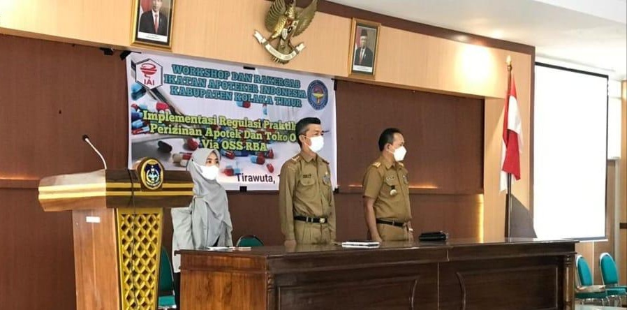 Tirawuta, SULTRA HEADLINE.COM. Ikatan Apoteker Indonesia (IAI) Pengurus Cabang Kolaka Timur (Koltim) Sulawesi Tenggara (Sultra) menggelar workshop dan Rakercab. Kegiatan itu mengusung tema Implementasi Regulasi Praktik dan Perizinan Apotek dan Tokoh Obat via OSS RBA.