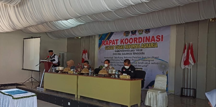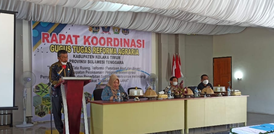 Dalam Sambutan Bupati Koltim yang diwakili Asisten I Setda Pemda Koltim Arisman menyampaikan , bahwa dalam pelaksanaan penata aset Reforma Agraria terbagi menjadi dua program, yaitu yang pertama adalah redistribusi tanah dan legalisi tanah.