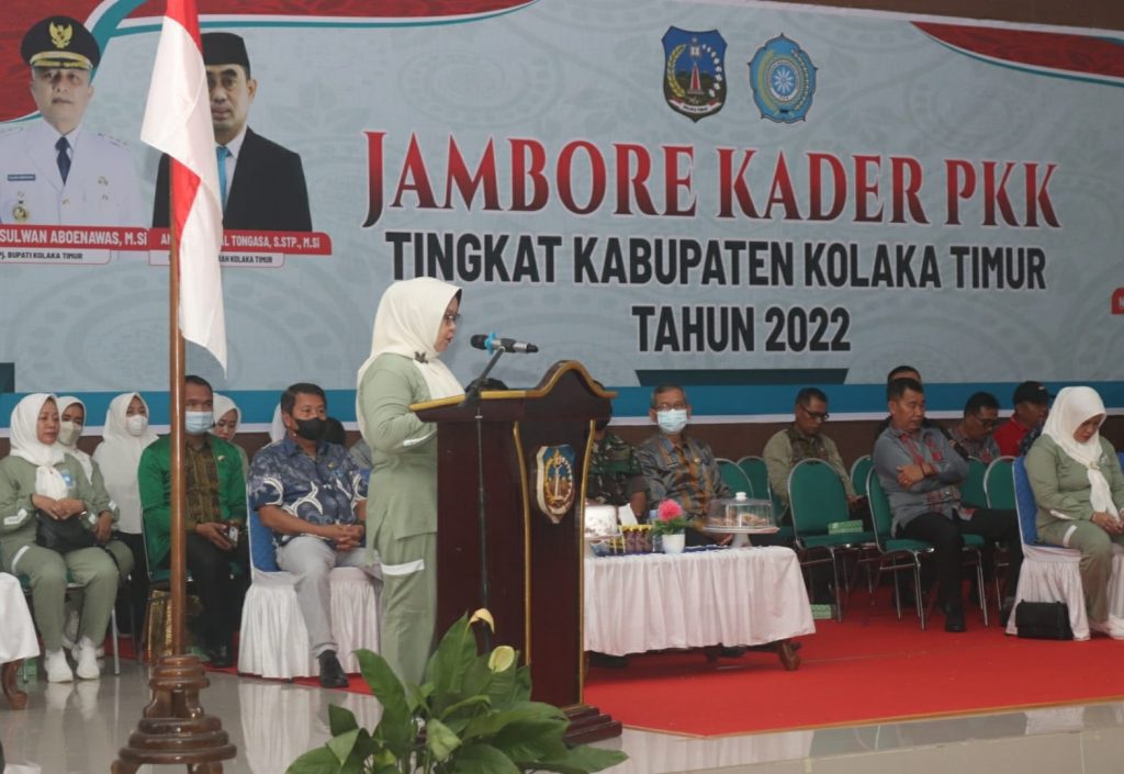 Tirawuta, SULTRA HEADLINE.COM. Tim Penggerak Pemberdayaan dan Kesejahteraan Keluarga (TP PKK) Kabupaten Kolaka Timur (Koltim) Sulawesi Tenggara menggelar jambore kader tingkat kabupaten periode 2022, yang dibuka oleh Pj Bupati Koltim Ir H Sulwan Aboenawas MSi di Aula Pemda Koltim, Kamis (23/06/2022).