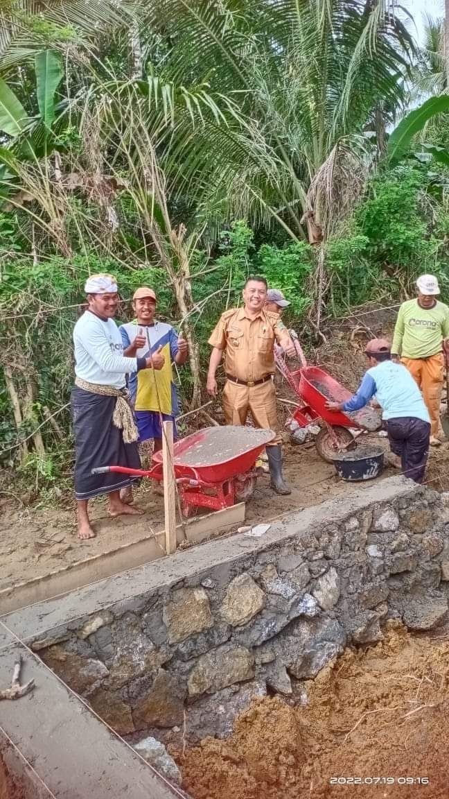 Pembangunan lumbung pangan masyarakat gabungan kelompok tani (Gapoktan) Buana sari dimulai dengan peletakan batu pertama yang dilakukan oleh Kepala Disketapang Muh Akbar bersama dengan para petani di desa itu.