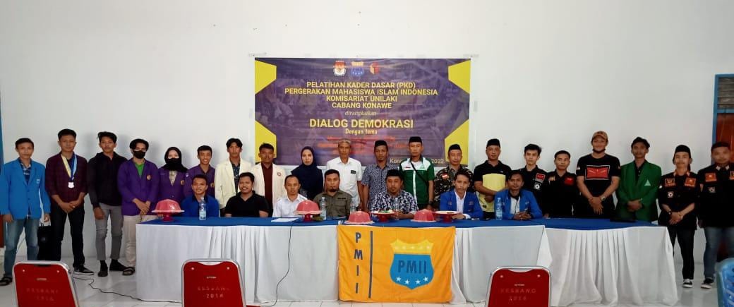 Unaaha , Sultra Headline.com. Pengurus Komisariat   Pergerakan Mahasiswa Islam Indonesia (PMII) Universitas Lakidende Cabang Konawe menggelar kegiatan Dialog Demokrasi dengan tema “Menyongsong Pemilu 2024 : Membedah Wacana Penataan Dapil Di Kabupaten Konawe” .Acara tersebut berlangsung di Aula Kesbangpol Konawe, pada Kamis, (21/07/022).