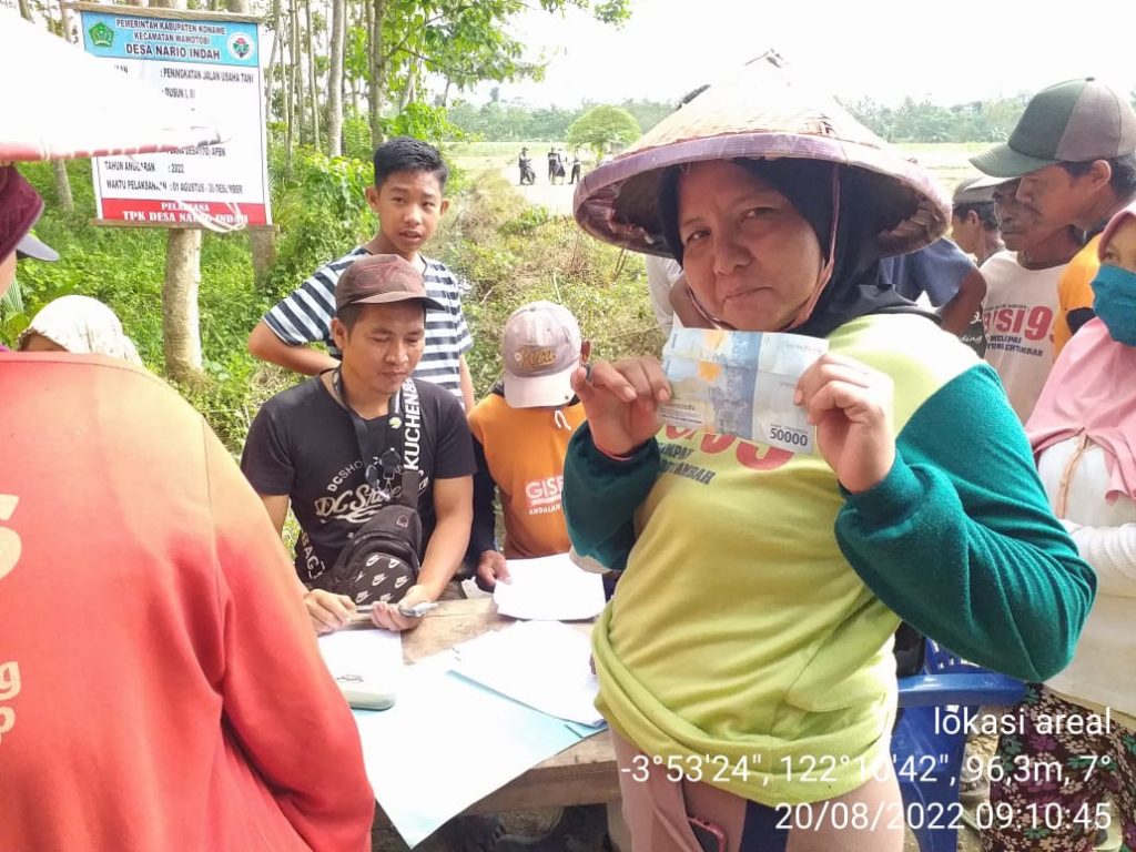 UNAAHA, SULTRA HEADLINE.COM. Pemerintah Desa (Pemdes) Nario Indah Kecamatan Anggotoa Kabupaten Konawe ,Sulawesi Tenggara (Sultra) melaksanakan kegiatan Padat Karya Tunai Desa (PKTD) berupa peningkatan Jalan Usaha Tani (JUT).