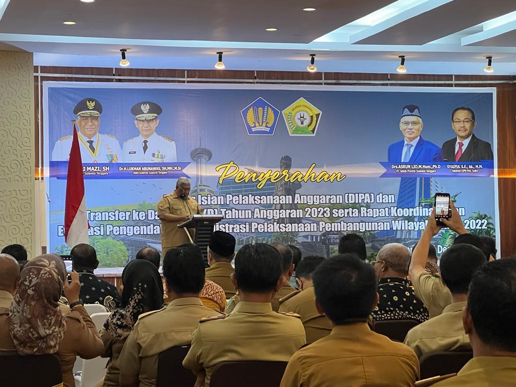 Gubernur menyampaikan seperti yang terkutip di laman juru bicara gubernur,  “Sebagaimana yang disampaikan oleh Presiden RI pada acara Penyerahan DIPA, dan TKDD Tahun Anggaran 2023, beberapa hari yang lalu, bahwa APBN 2023 dirancang sebagai instrumen perlindungan sosial bagi masyarakat yang rentan, serta untuk terus mendorong kelanjutan pemulihan ekonomi nasional dan reformasi struktural,” kata Gubernur Ali Mazi saat memberikan sambutan dan arahannya.