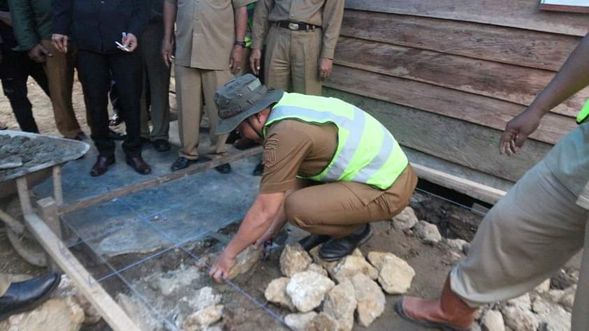 TIRAWUTA, SULTRAHEADLINE.COM. PJ Bupati Kolaka Timur Abdul Azis SH melakukan secara simbolis peletakan batu pertama untuk program pembangunan Mck Individual di Kelurahan Poli-Polia Kecamatan Poli-polia tahun anggaran 2022 ini, Selasa (11/10/2022).