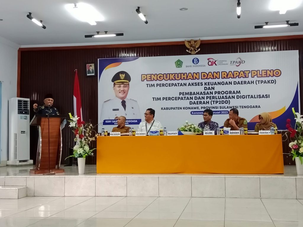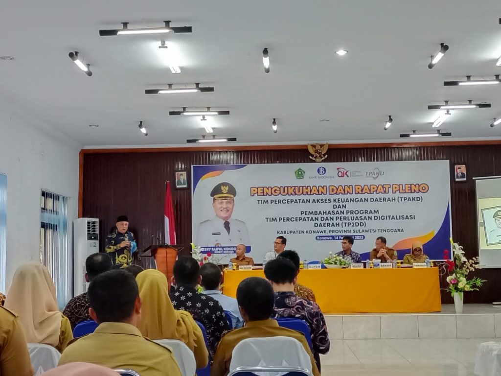 UNAAHA, SULTRAHEADLINE. COM. Bupati Konawe, Sulawesi Tenggara (Sultra) Kery Saiful Konggoasa (KSK) mengukuhkan Tim Percepatan Akses Keuangan Daerah (TPAKD) Kabupaten Konawe tahun 2023, di Aula BKPSDM Konawe, Selasa (14/02/2023).