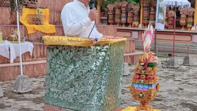Dalam sambutannya, Bupati berharap dalam penyelenggaraan kegiatan hari ini termasuk dengan bapak/ibu yang melaksanakan ibadah bersama dalam rangka ulang tahun Pura Adat Amerta Sari di Desa Mekar Jaya semoga bisa menjadi kebaikan untuk bersama.
