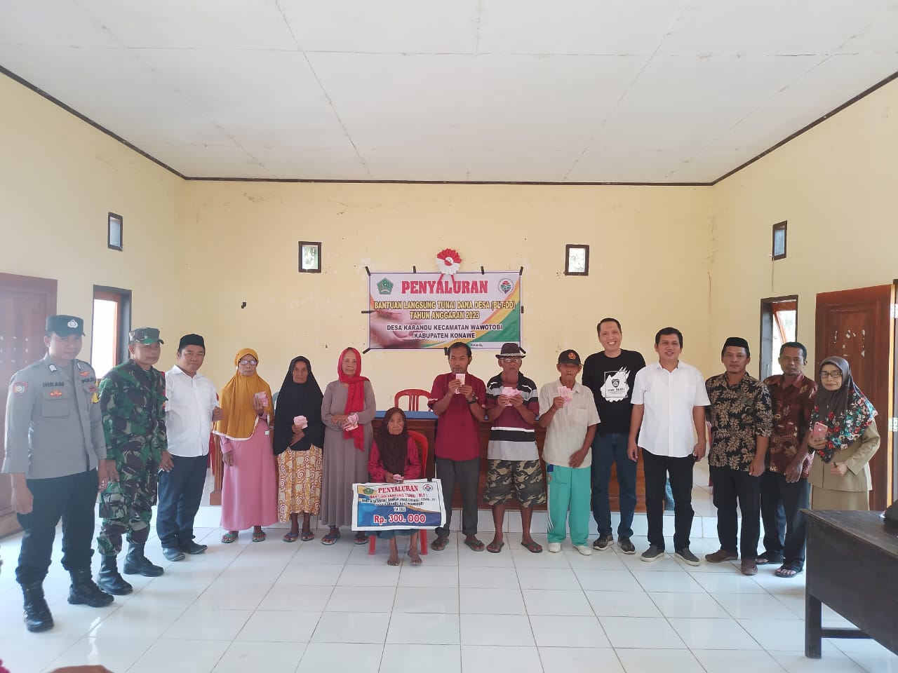 UNAAHA, SULTRAHEADLINE.COM. Pemerintah Desa (Pemdes) Karandu Kecamatan Wawotobi Kabupaten Konawe Provinsi Sulawesi Tenggara (Sultra) kembali menyalurkan Bantuan Langsung Tunai Dana Desa (BLT-DD) tahun anggaran 2023 ini.