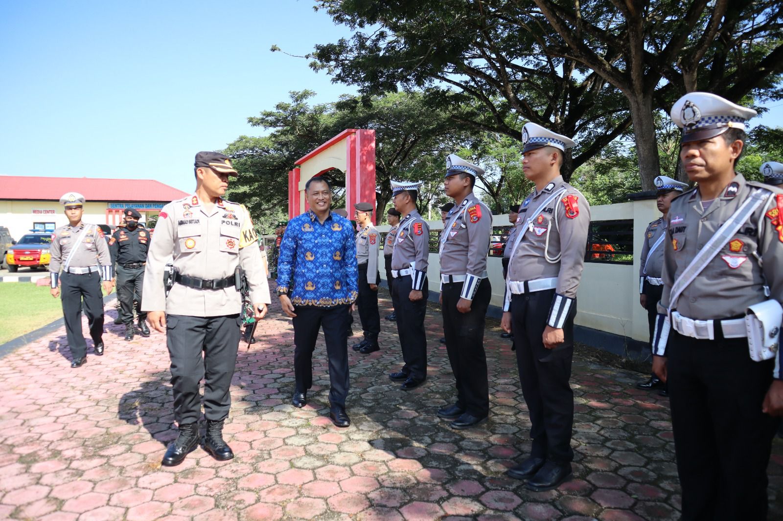 UNAAHA, SULTRAHEADLIME. COM. Kapolres Konawe, AKBP Ahmad Setiadi didampingi Sekretaris Daerah (Sekda) Konawe Ferdinand Sapan memimpin apel gelar pasukan operasi ketupat anoa tahun 2023 di lapangan apel Mapolres Konawe, Senin (17/4/2023).