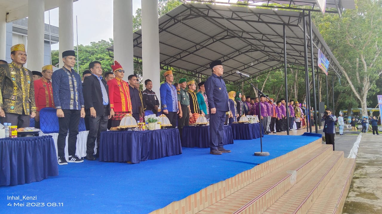 UNAAHA, SULTRAHEADLINE.COM. Pemerintah Kabupaten (Pemkab) Konawe menggelar upacara bendera dalam rangka memperingati Hari Pendidikan Nasional (Hardiknas) 2023, bertempat halaman Kantor Bupati Konawe, Kamis (04/5/2023).