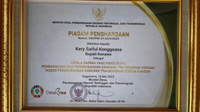 Lalu, Konawe juga menerima penghargaan sebagai Kabupaten Berkinerja Tinggi dari Kementerian Dalam Negeri, 29 April lalu. Kali ini, KSK kembali mendapatkan Piagam Lencana Bakti Transmigrasi dari Kementerian Desa PDTT.