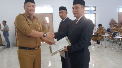 Pelantikan tersebut dipimpin langsung oleh Sekretaris Daerah (Sekda) Konawe Ferdinand Sapan, di Aula kantor Badan Kepegawaian dan Pengembangan Sumber Daya Manusia (BKPSDM) Konawe, Selasa (25/07/ 2023).