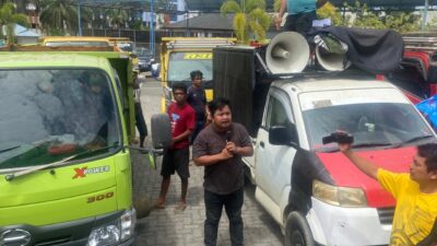 UNAAHA, BKK- Ratusan sopir dum truck yang tergabung dalam ikatan sopir dum truck Kabupaten Konawe menggelar unjuk rasa di kantor DPRD Sulawesi Tenggara (Sultra). Selasa, 17 Oktober 2023.