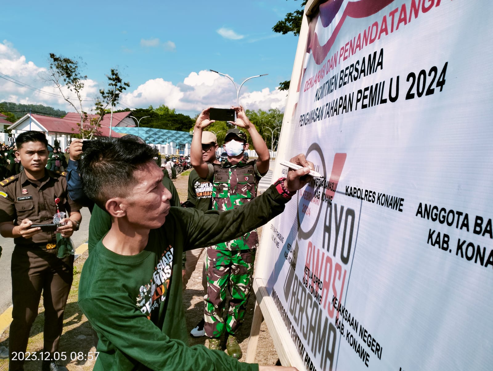 Untuk diketahui, pada apel siaga pengawasan pemilu ini, juga dirangkaikan deklarasi dan penandatanganan komitmen bersama pengawasan tahapan pemilu 2024 yang di lakukan oleh Bawaslu Kabupaten Konawe serta Forkopimda Konawe.