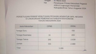 Kepala Badan Kepegawaian dan Pengembangan Sumber Daya Manusia (BKPSDM) Kabupaten Konawe, Suparjo yang dikonfirmasi membenarkan informasi tersebut.