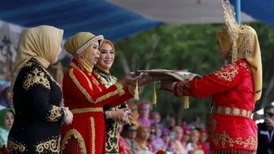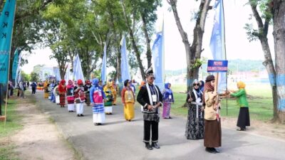 UNAAHA, SULTRA HEADLINE.COM. Jambore Pemberdayaan Kesejahteraan Keluarga (PKK) tahun 2024 yang dipusatkan di Konawe, telah resmi dibuka, Jumat (19/4). Defile parade budaya yang diikuti kafilah dari 17 kabupaten/kota se-Sultra, menjadi penampilan pembuka kemeriahan jambore PKK tingkat provinsi tersebut. Pada pawai itu, 17 kontingen PKK se-Sultra tersebut, menampilkan kekayaan budaya daerah masing-masing. Misalnya, dengan mengenakan kostum tradisional yang memukau dengan corak khas daerah masing-masing.