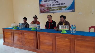 Penyaluran BLT-DD merupakan tahap salur I tahun 2024 ini,  selama 3 bulan berjalan yakni Januari-Maret yang berjumlah Rp.900.000 per KPM. Dilaksanakan di balai desa setempat . Hadir Kepala Desa (Kades) Agus Mujiono, Pendamping Kecamatan Suhri, Pendamping Desa Andi Apriansyah M, Badan Pembangun Desa (BPD), dan sejumlah aparat desa setempat.