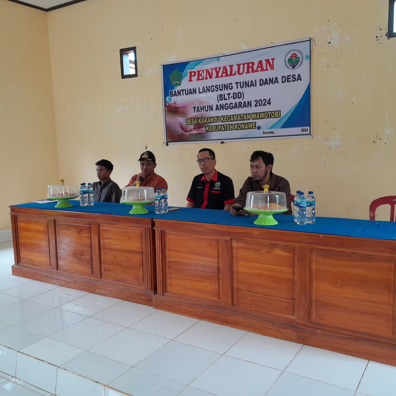 UNAAHA, SULTRA HEADLINE.COM. Pemerintah Desa (Pemdes) Karandu Kecamatan Wawotobi, Kabupaten Konawe menyalurkan Bantuan Langsung Tunai (BLT-DD) kepada 31 Keluarga Penerima Manfaat (KPM) tahun 2024 ini.