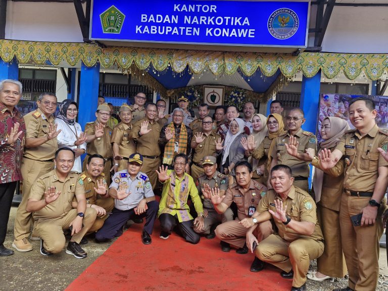 UNAAHA, SULTRAHEADLINE.COM. Pemerintah Kabupaten (Pemkab) Konawe menerima Kunjungan Kerja (Kunker) Kepala Badan Narkotika Nasional Republik Indonesia (BNN-RI) dalam rangka penandatanganan Hibah dan Prasasti BNN Konawe, sekaligus meresmikan kantor BNN Konawe, Kecamatan Unaaha, Sulawesi Tenggara, Selasa (30/07/2024).