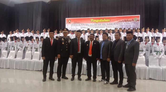 UNAAHA, SULTRAHEADLINE.COM. Sebanyak 76 pelajar resmi dikukuhkan sebagai Pasukan Pengibar Bendera Pusaka (Paskibraka) Kabupaten Konawe, Kamis malam (15/8/2024) di Hotel Nugraha Konawe.