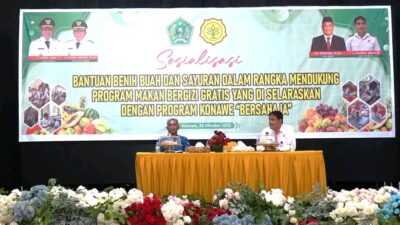 UNAAHA, SULTRA HEADLINE.COM. Bupati Konawe Yusran Akbar, secara resmi membuka kegiatan Sosialisasi Penerima Bantuan Benih Buah dan Sayuran serta Sarana Produksinya dalam Rangka Mendukung Program Makan Bergizi Gratis (MBG) Tahun 2025, yang berlangsung di Hotel Nugraha, Unaaha, pada Selasa (28/10/2025).