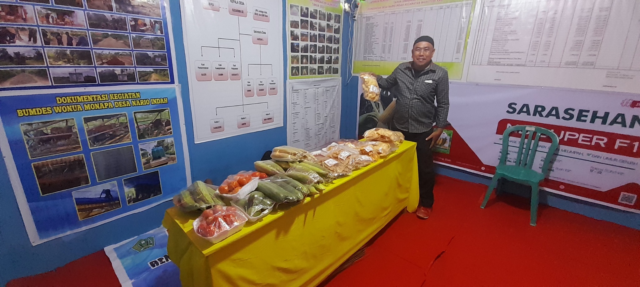 Salah satu peserta yang mencuri perhatian adalah Pemerintah Desa (Pemdes) Nario Indah, Kecamatan Wawotobi. Desa ini tak hanya sekadar berpartisipasi, tetapi tampil all-out dengan memamerkan kekayaan alam dan kreativitas warganya. Saat jurnalis mengunjungi stan mereka, terlihat jelas potensi desa, mulai dari hasil bumi unggulan pertanian hingga deretan produk khas UMKM yang diproduksi langsung oleh masyarakat setempat.